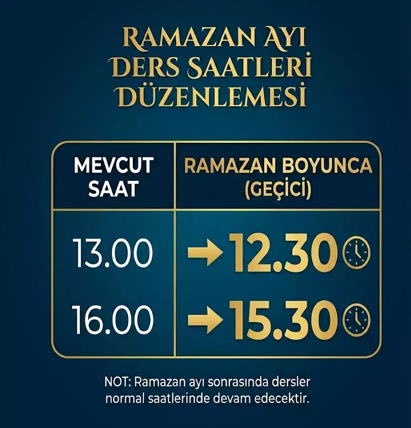 Ramazan Ayı Ders Saati Düzenlemesi