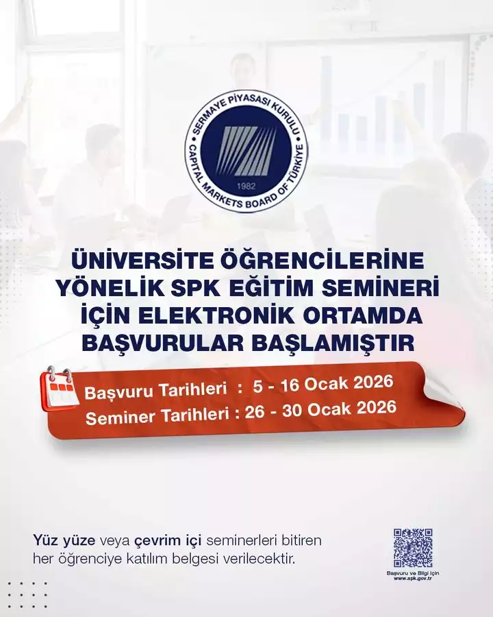 Üniversite öğrencilerine yönelik “SPK Eğitim Seminerleri” için başvurular bugün başladı.