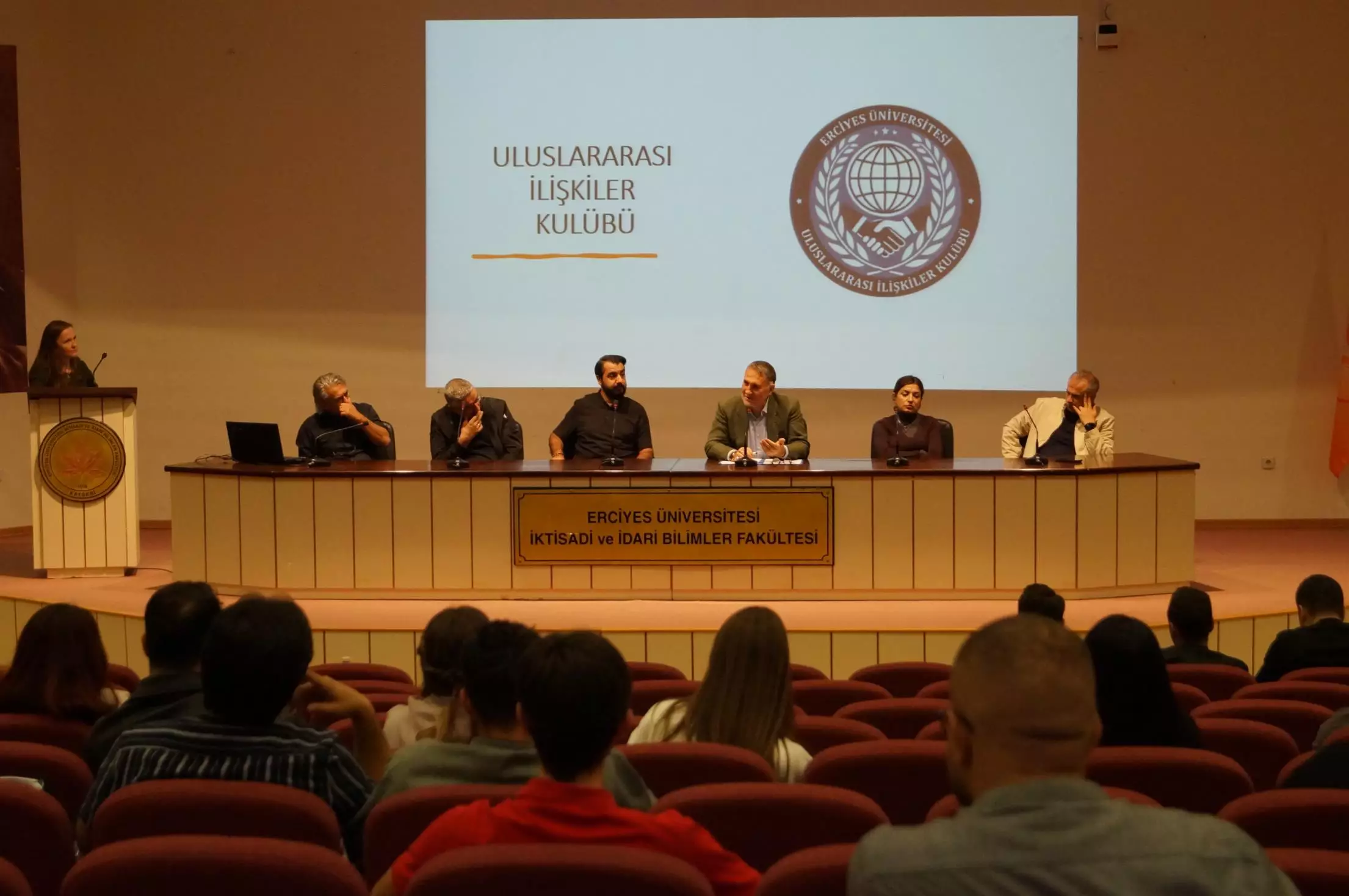 Bölümümüz hazırlık sınıfı ve birinci sınıf öğrencilerine yönelik olarak, 07 Ekim 2025 Salı günü saat 11.00 – 12.00 arasında İktisadi ve İdari Bilimler Fakültesi Konferans Salonu’nda bir oryantasyon toplantısı düzenlenmiştir. Toplantının ilk bölümünde, önceki iki dönem boyunca Uluslararası İlişkiler Bölüm Başkanlığı ve Bölüm Başkan Yardımcılığı görevlerini yürütmüş olan Prof. Dr. Ömer KURTBAĞ ve Dr. Öğr. Üyesi Nail TANRIÖVEN’e görev süreleri boyunca göstermiş oldukları özverili çalışmalar ve katkılar dolayısıyla teşekkür plaketi takdim edilmiştir. Akabinde, bölüm öğretim elemanlarımızdan Arş. Gör. Dr. Mücahid GÜRBÜZ tarafından bölümün akademik yapısı, öğrencilere sunulan imkânlar ve eğitim-öğretim süreciyle ilgili genel bilgilendirme sunumu gerçekleştirilmiş; öğrencilerden beklentiler aktarılmıştır. Toplantının devamında, öğrencilerimizin kişisel, mesleki, sosyal ve kültürel gelişimlerini desteklemek amacıyla bölüm bünyesinde kurulan Uluslararası İlişkiler Kulübü tanıtılmış; Kulüp Başkanlığı görevini yürüten öğrencimiz Ahmet Fatih KARACA tarafından önceki dönemde gerçekleştirilen kulüp faaliyetlerine ilişkin bilgilendirme yapılmış ve öğrenciler kulüp çalışmalarına katılım göstermeye davet edilmiştir. Toplantının son bölümünde ise öğrenciler ile öğretim elemanları arasında karşılıklı bir iletişim ortamı sağlanarak, öğrencilerin soruları yanıtlanmış ve çeşitli konularda görüş alışverişinde bulunulmuştur.
