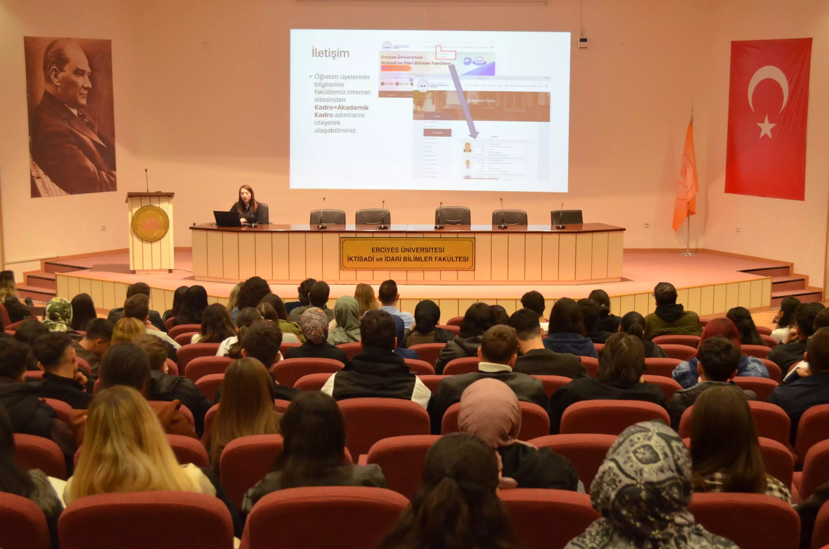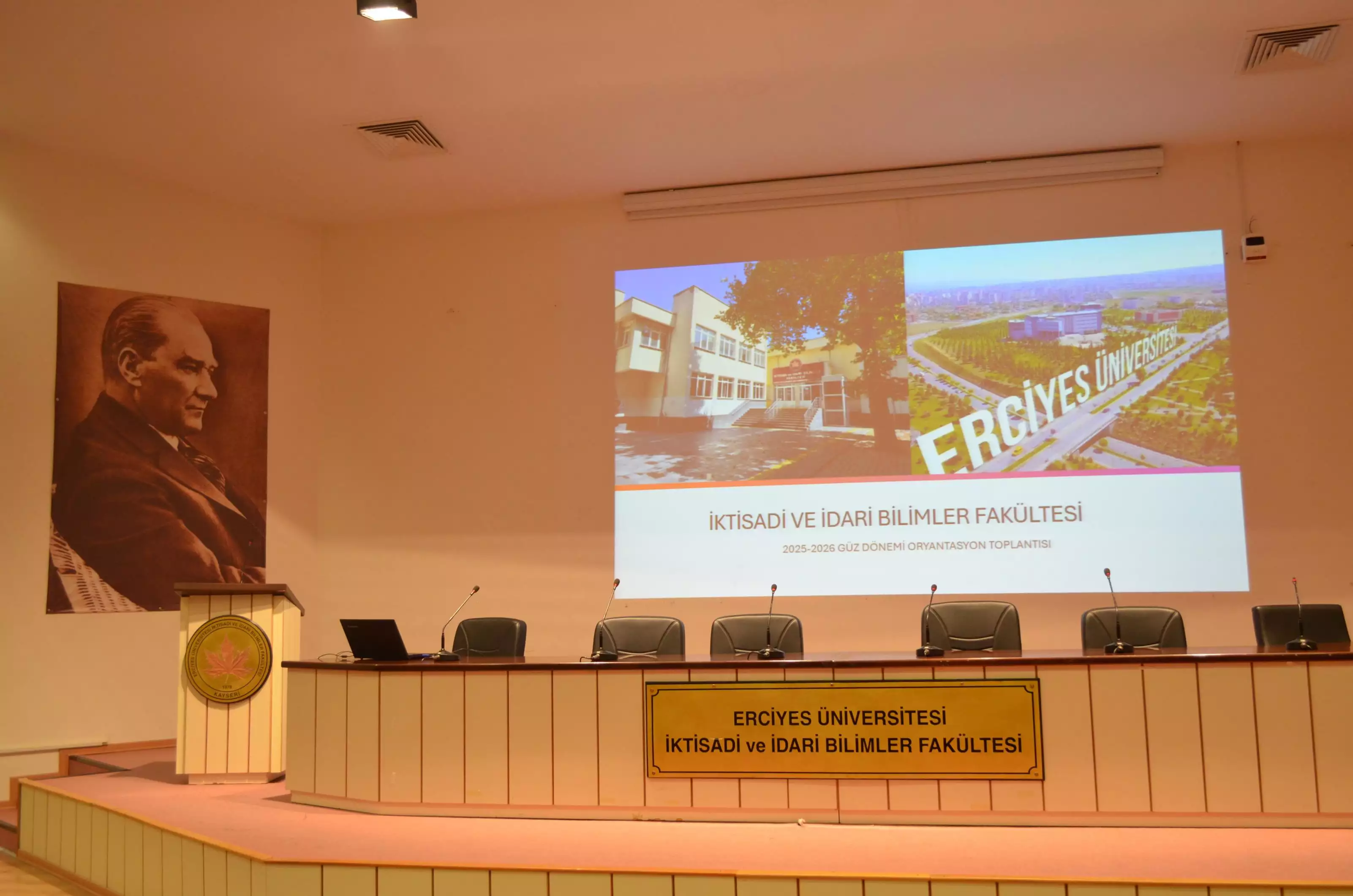 Erciyes Üniversitesi İİBF 2025-2026 Öğretim Yılı Oryantasyon Toplantısı 10 Ekim 2025 Cuma günü Saat 11.00'de ERÜ İİBF Konferans Salonu'nda Dekan Yardımcılarımız Prof. Dr. Oğuzhan TÜKER, Doç. Dr. Melike DEDEOĞLU, fakültemiz öğretim üyeleri ve öğrencilerimizin katılımı ile yapılmıştır.